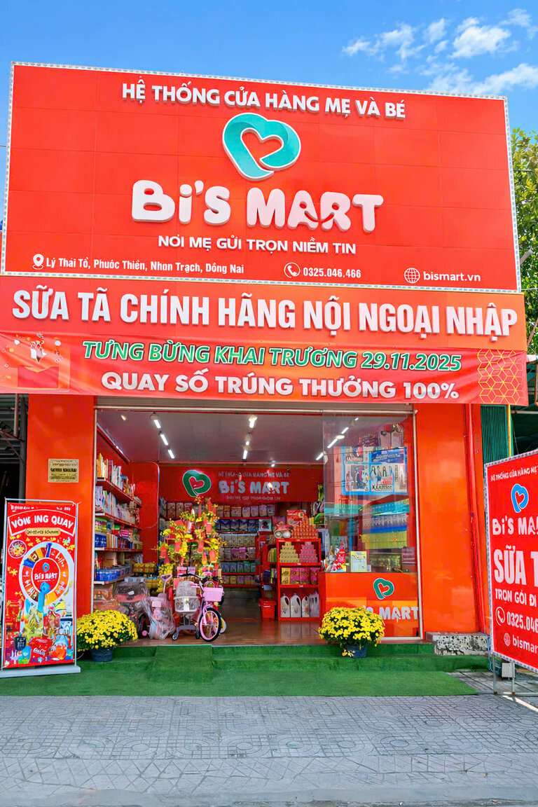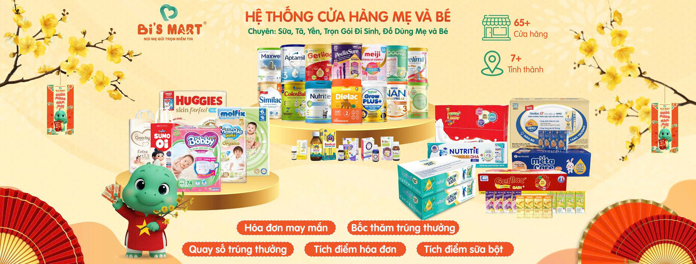 Được thành lập vào năm 2021, Bi’S MART là hệ thống cửa hàng chuyên cung cấp các sản phẩm chăm sóc mẹ bầu, mẹ sau sinh và trẻ nhỏ. Từ những vật dụng thiết yếu như tã, sữa, thực phẩm dinh dưỡng, cũng như các combo đi sinh trọn gói – tất cả đều được Bi’S MART tuyển chọn kỹ lưỡng từ các thương hiệu uy tín trong và ngoài nước như: Nutifood, Meiji, ColosBaby, Abbott, Bobby, Huggies, Merries, Pampers,…
