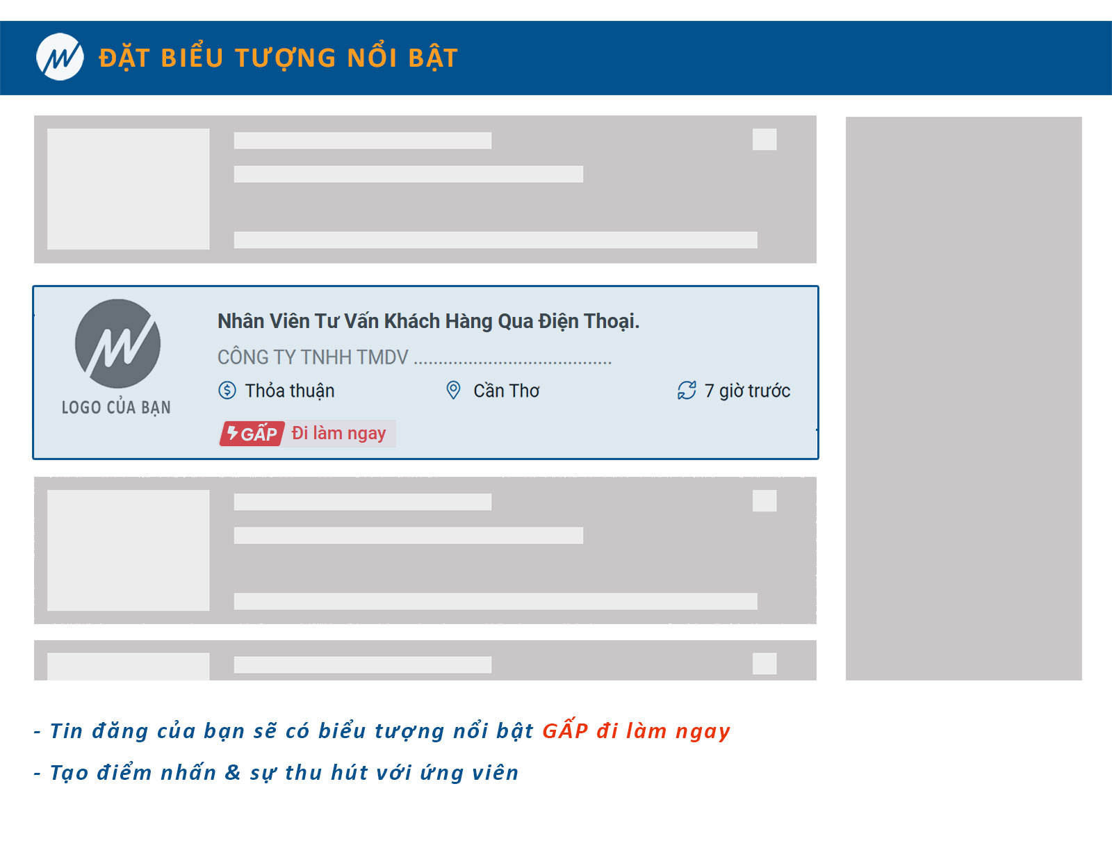 Khi ứng viên nhìn vào tin đăng của bạn sẽ có được niềm tin nhất định về công ty trước khi nộp hồ sơ, nhờ vào icon uy tín xuất hiện trước tên công ty của bạn. Đây cũng là cách hiệu quả để tạo uy tín cho thương hiệu doanh nghiệp.