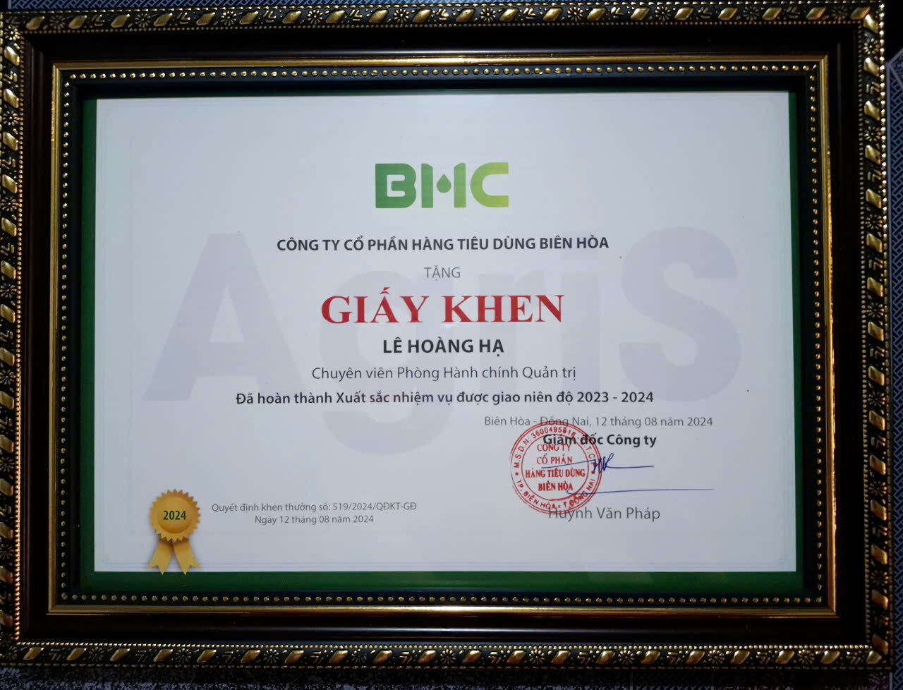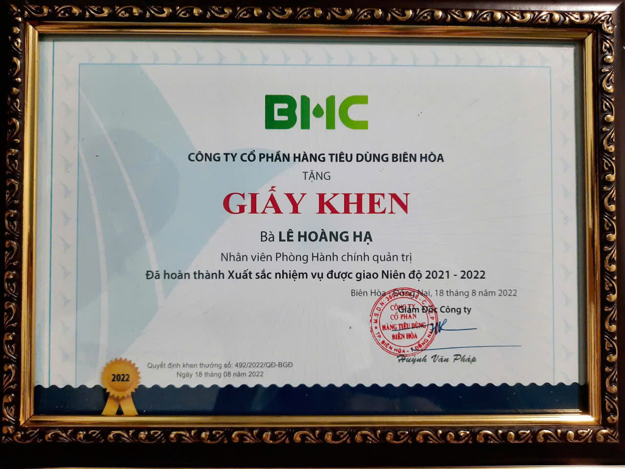Đạt thành tích hoàn thành nhiệm vụ xuất sắc trong 3 năm liên tiếp.